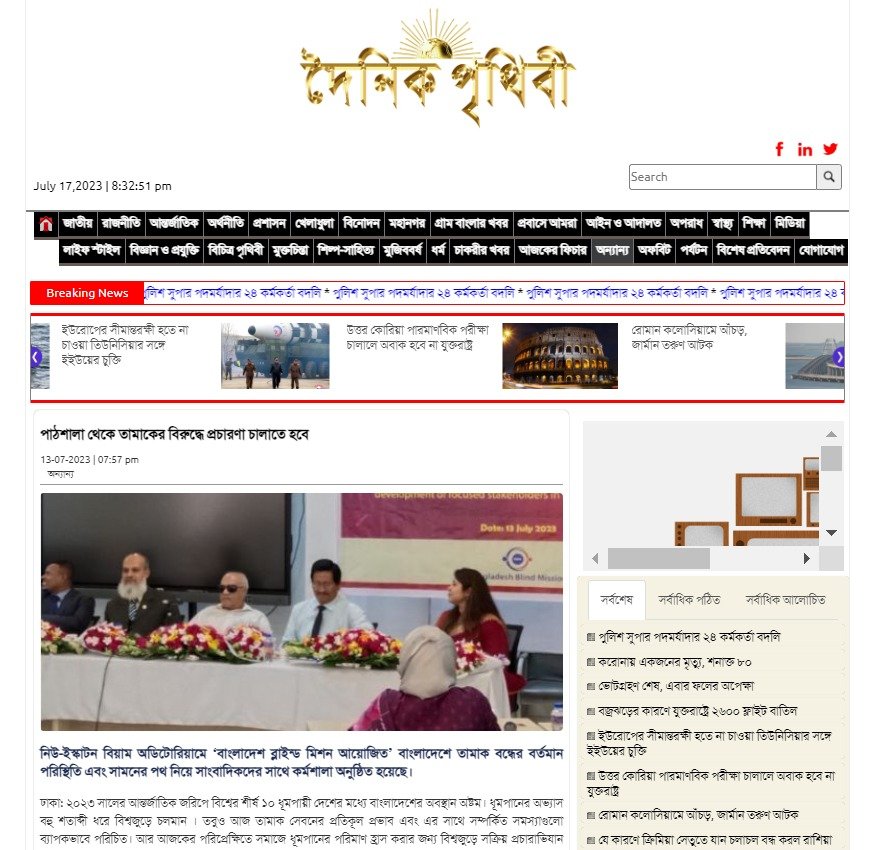 পাঠশালা থেকে তামাকের বিরুদ্ধে প্রচারণা চালাতে হবে