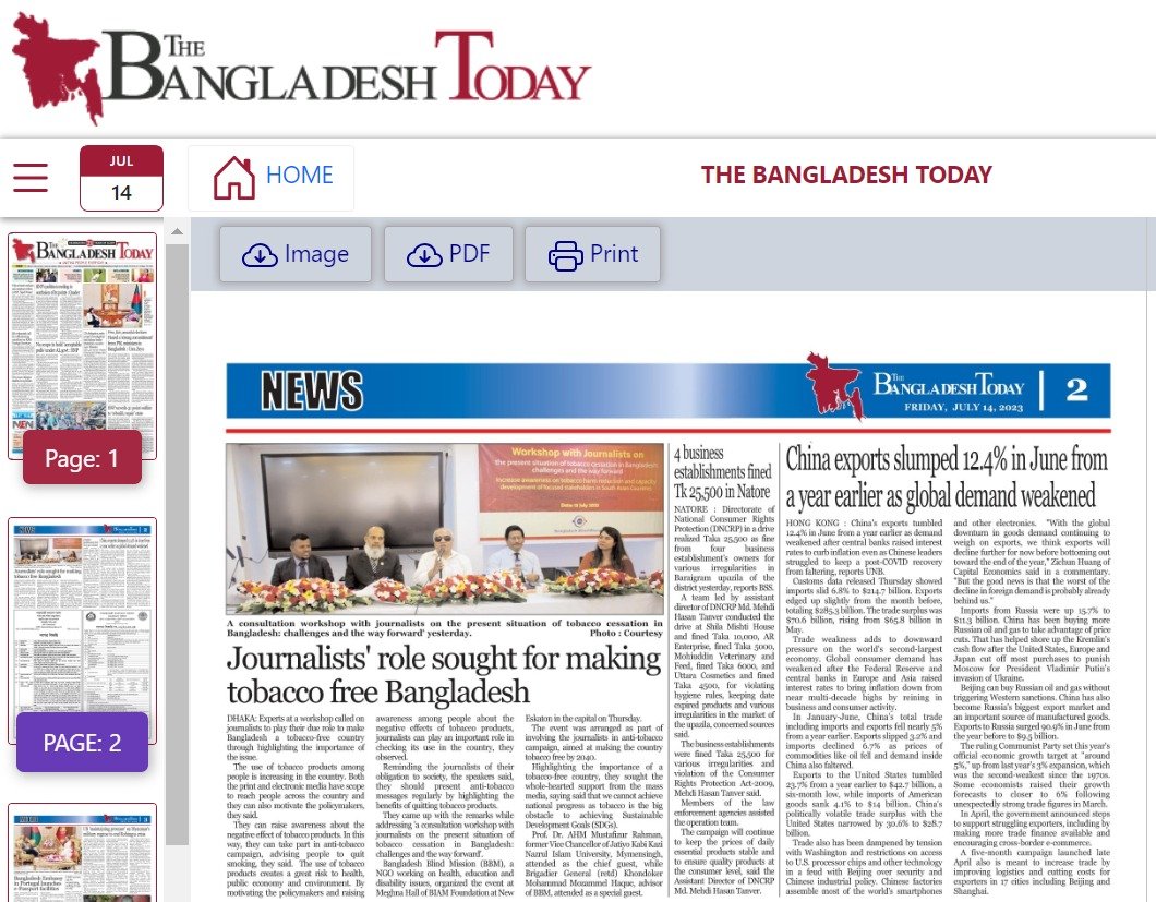 তামাকমুক্ত দেশ গঠনে সচেতনতা তৈরীতে সাংবাদিকদের ভূমিকা পালনের আহবান